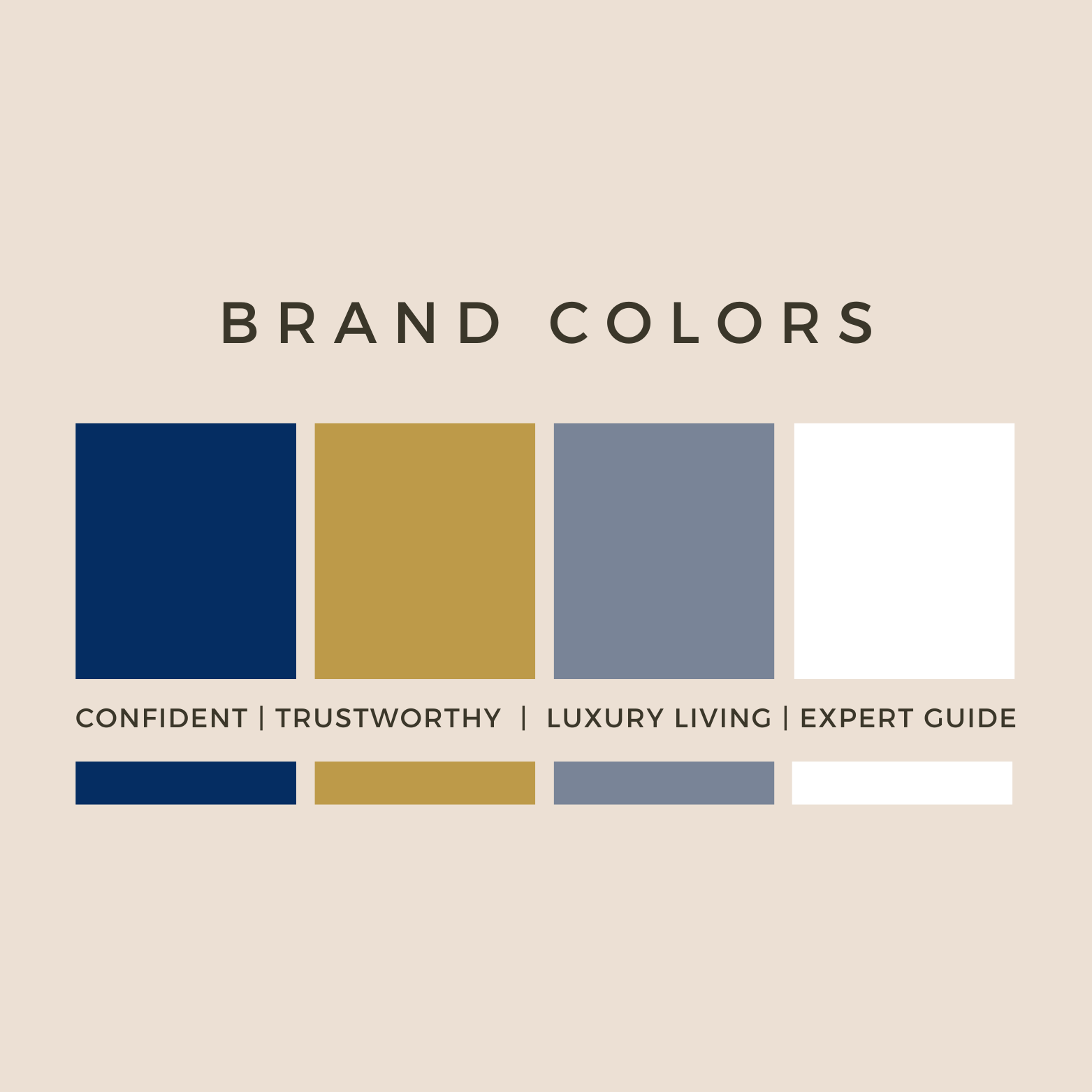 Color Palette: We chose a sophisticated and luxurious color palette of navy blue, gold, and white to reflect the high-end market Kristin serves.
